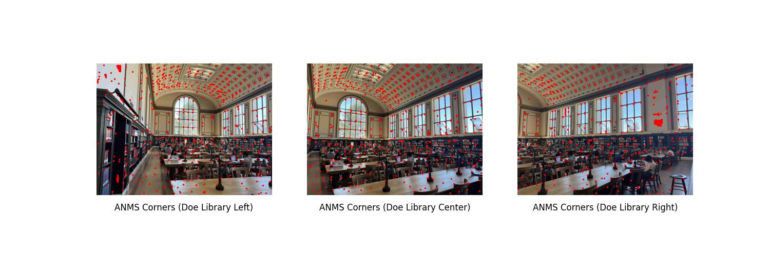 After implementing Adaptive Non-Maximal Suppression (ANMS), these are the suppressed number of Harris corner points found on the Doe Library image set: