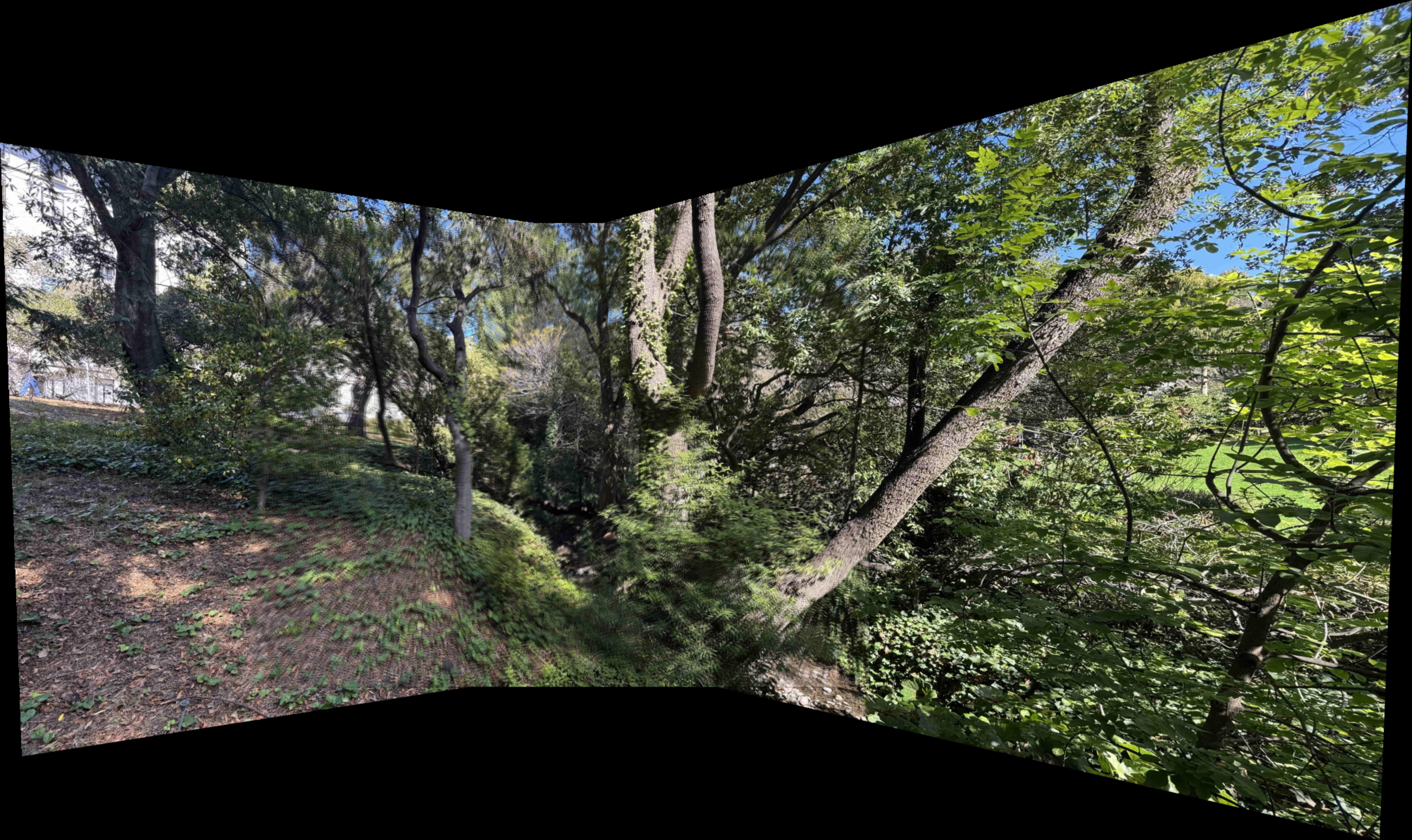 Originally, I stitched the images together without blending by using a simple binary mask. So to blend the images, I implemented a multi-resolution 2-level Laplacian stack blending approach (use my code from Project 2). The images and their masks were downsampled to reduce computation time, and the masks were softened with Gaussian blurring to create smooth transition weights. I then blended the left and center mosaics first, and then blended that with the right image.