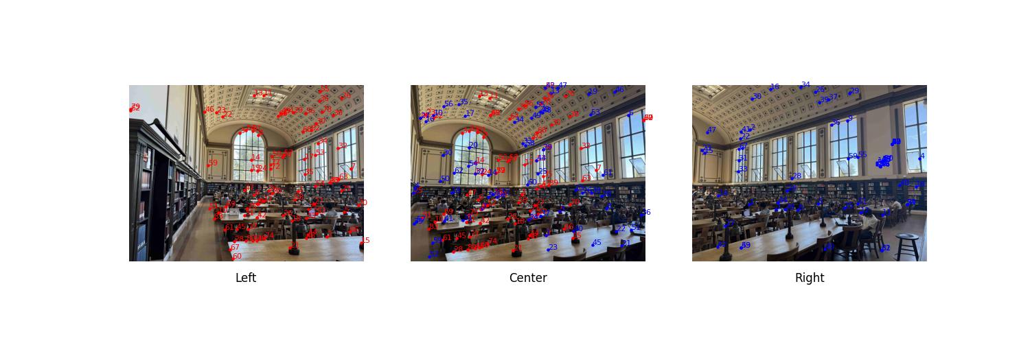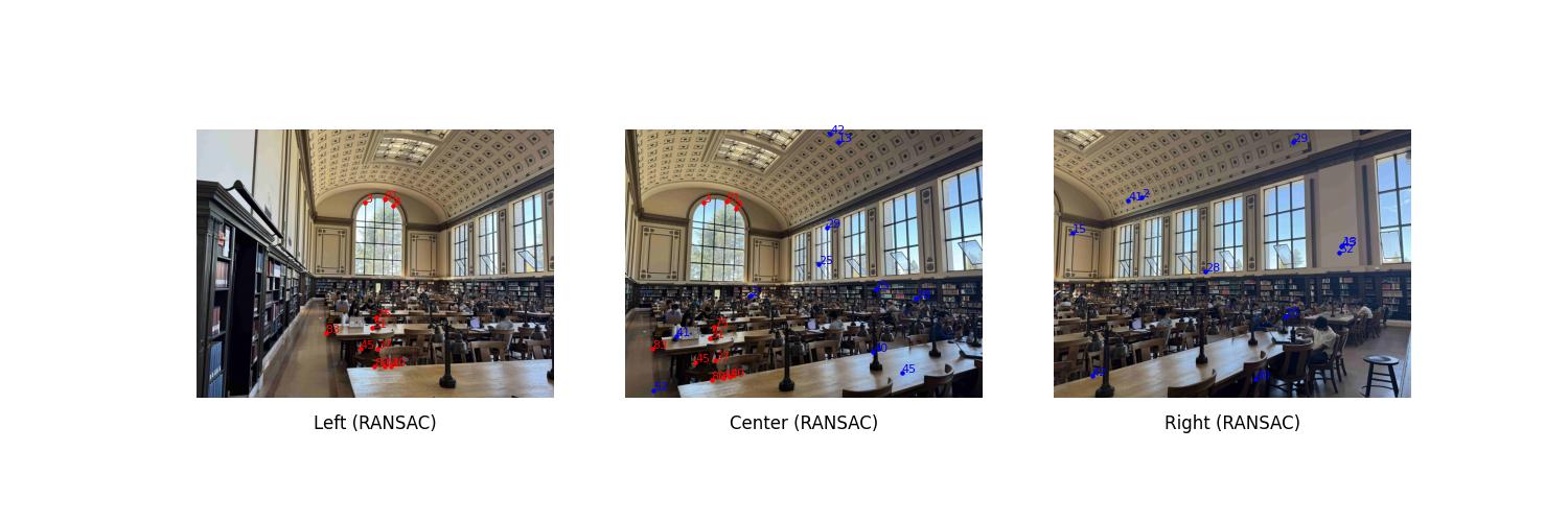 Left + Center inliers (Red), Center + Right inliers (Blue)