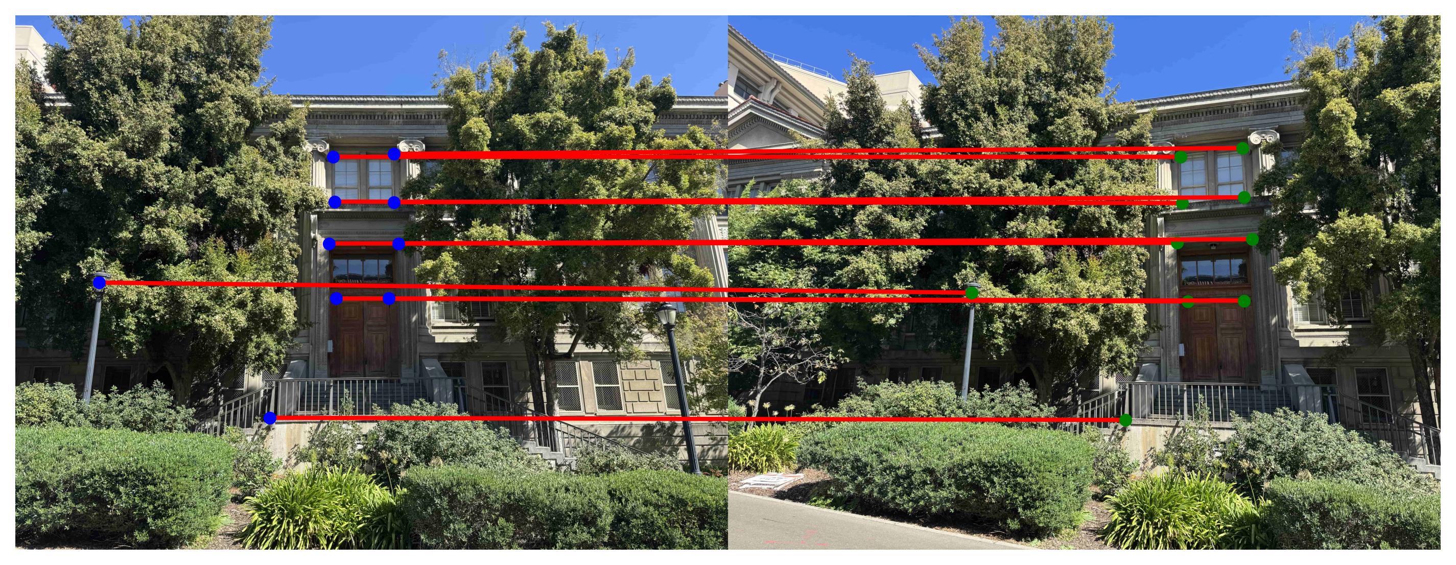 Here are the 10 point correspondences used to compute the homographies for each set of photos: