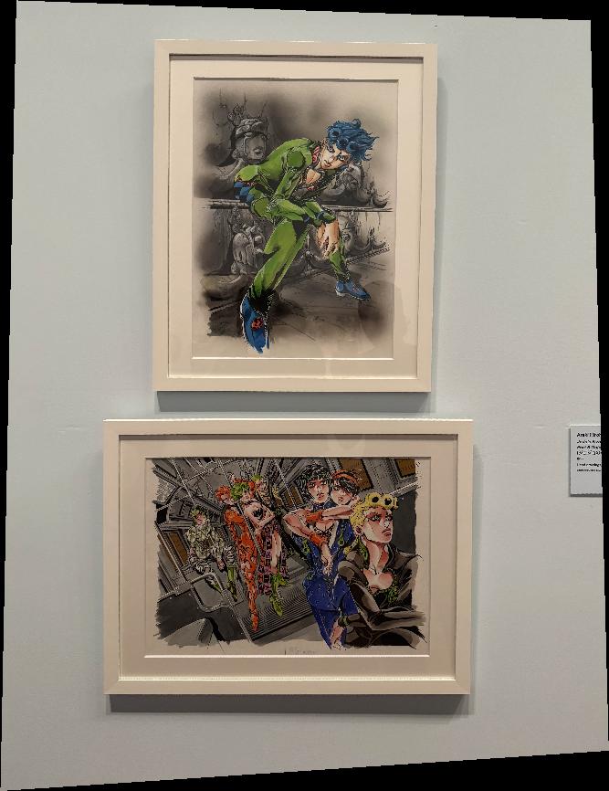 I defined the correspondences for this image using the bottom painting of the photo to compute \(H\).