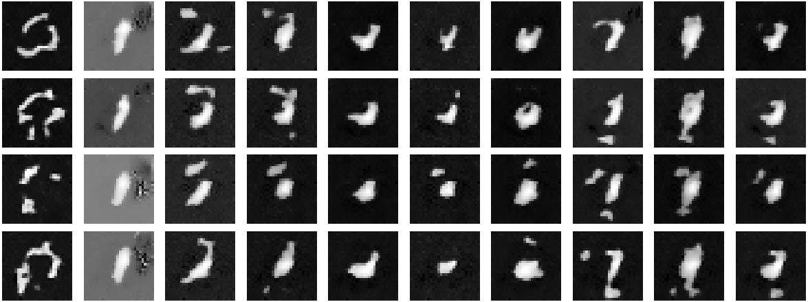 Here are the denoised results from the classed-conditioned UNet for the 1st, 5th, and 10th (last) epochs: