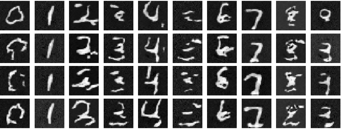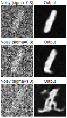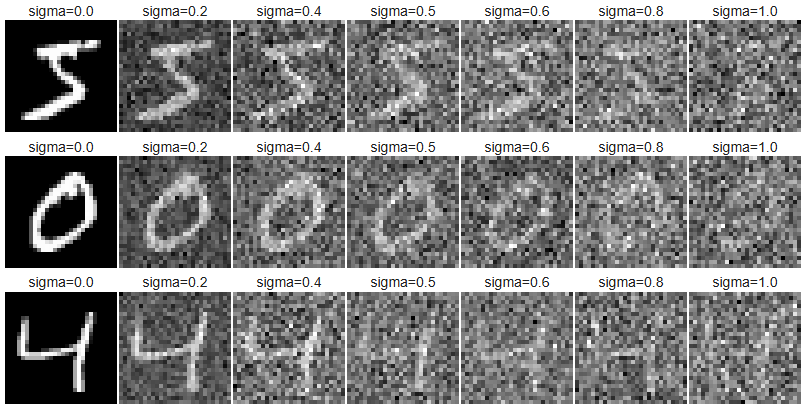 Observe that the images become noiser as \(\sigma\) increases, which makes sense as it increases the effect of additive noise \(\epsilon\).