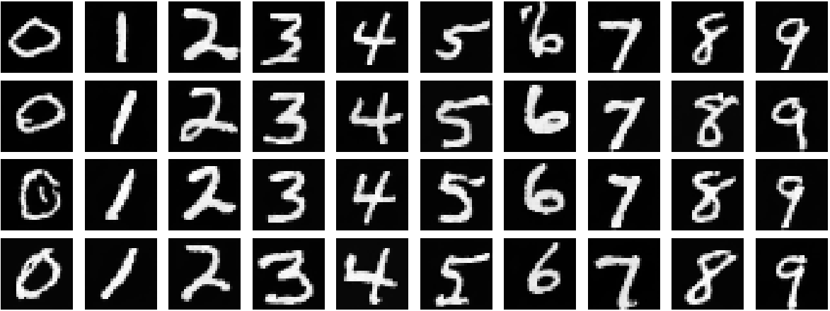 To improve upon the previous results and give us more control for image generation, we can optionally condition the UNet on the 0-9 digit classes in addition to the time conditioning.
