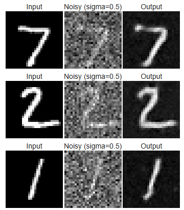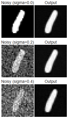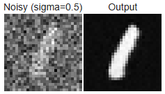 Here are the denoised results on the test set at the 1st and 5th (last) epochs: