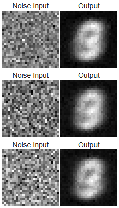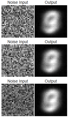 The results resemble a blurry average of all MNIST digits, with the number \(3\) appearing most prominent. This makes sense because this denoiser learns to map pure Gaussian noise, containing no structure, to the mean of the training data. Since the denoiser model is optimized using the MSE loss (minimizes the sum of squared distances to all MNIST training examples), the network converges to output the pixelwise average of the dataset. As a result, the final output looks like an indistinct "average digit" rather than any specific number.