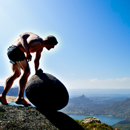 - “A photo of Sisyphus pushing a boulder up a hill”