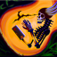 Hybrid images of a guitar and an oil painting of a skeleton smoking a cigarette